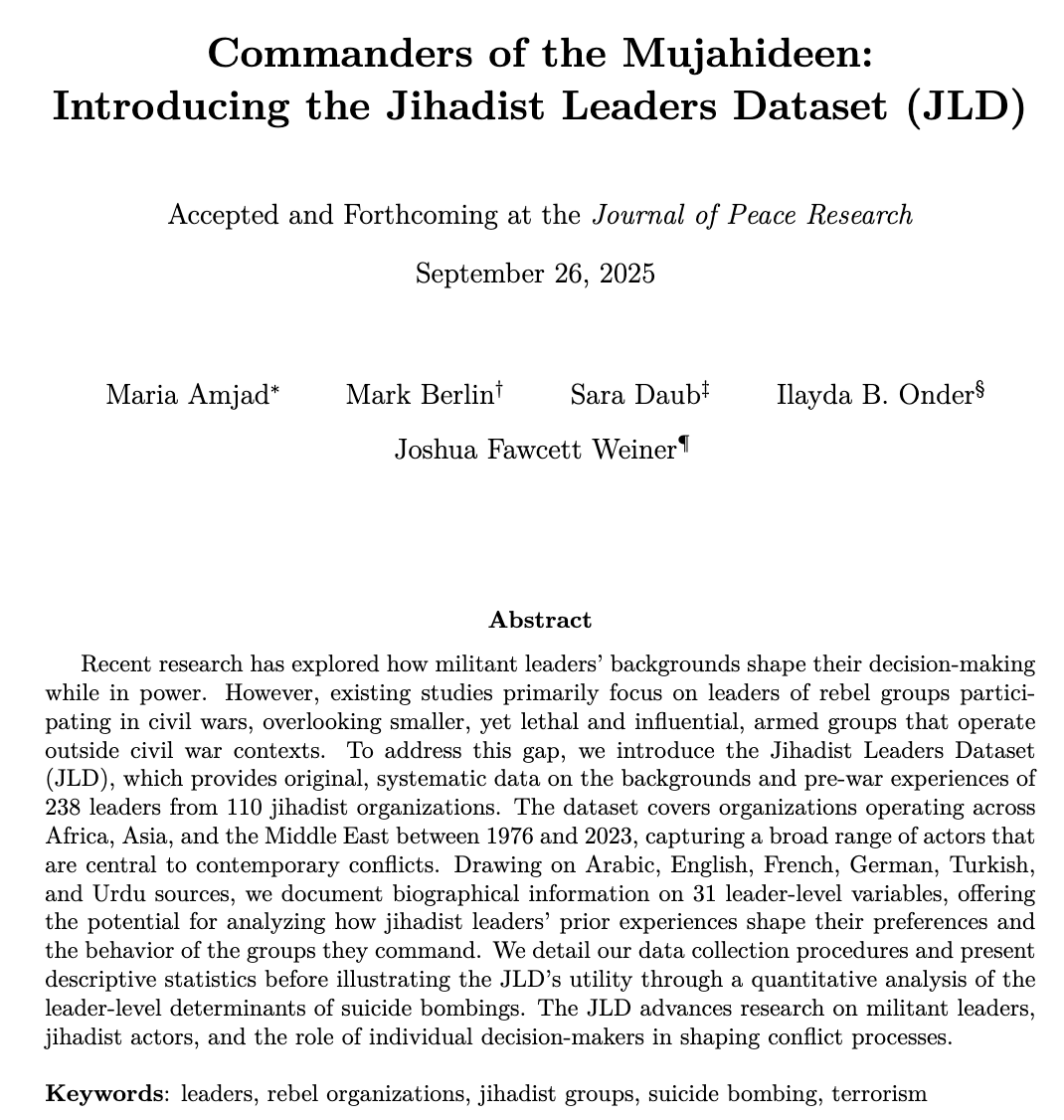 Commanders of the Mujahideen: Introducing the Jihadist Leaders Dataset (JLD)